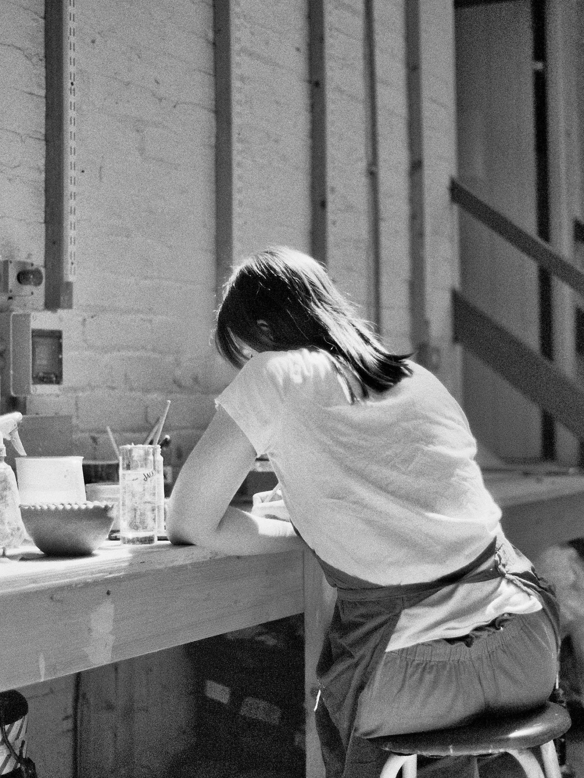 Alice is a potter living and working from SE London. She graduated with a diploma from Clay College in Stoke on Trent in 2024. Since then, she has become a member of Dockyard Ceramics, a shared pottery studio in Woolwich Dockyard and teaches pottery skills classes from many London studios including, Maze Hill, Studio Pottery London and County Hall Pottery alongside production pottery work and artist fabrication.